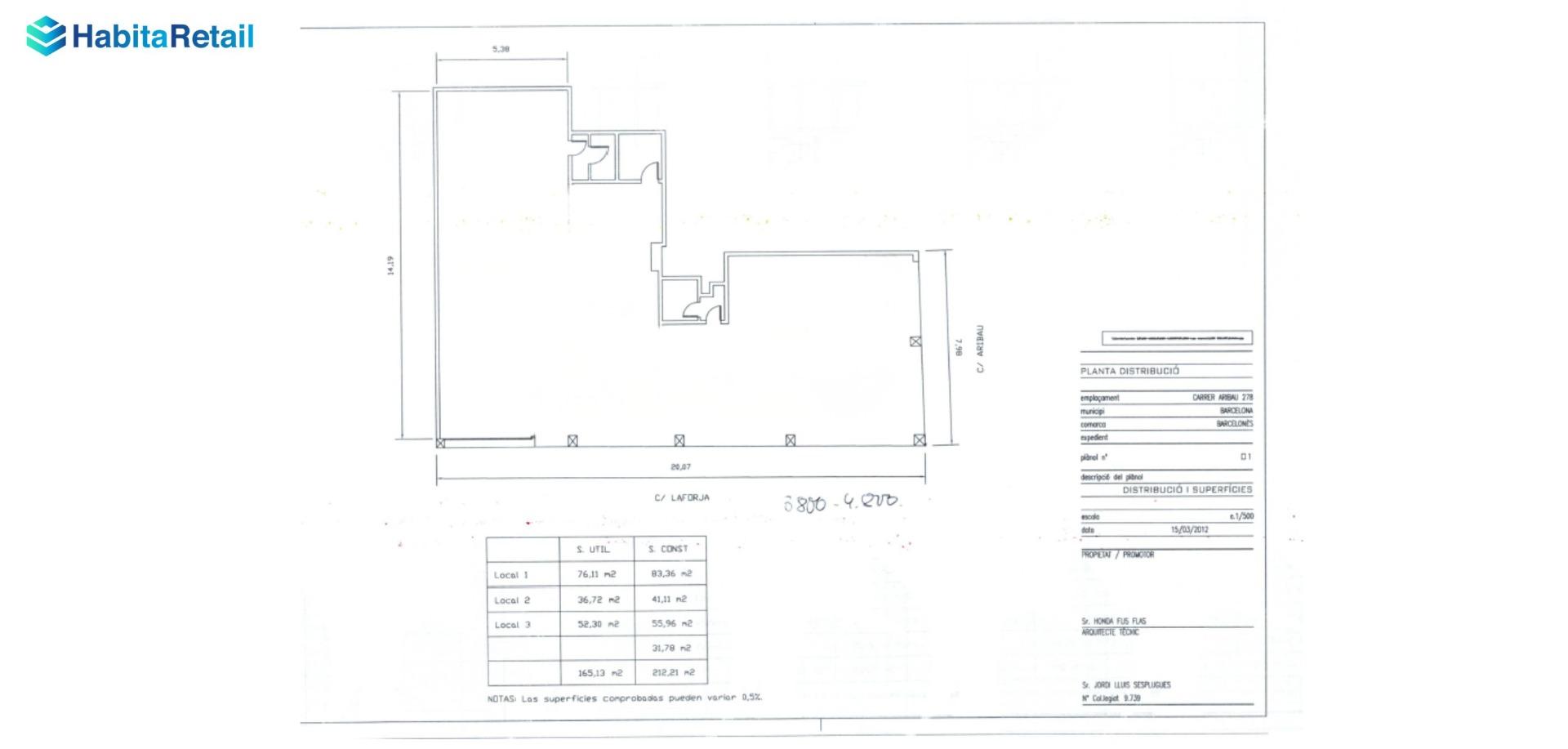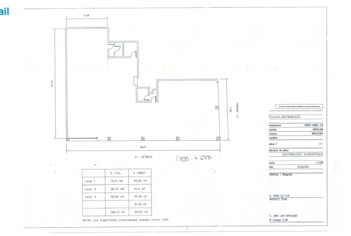 The premises have a constructed area of approximately 212 m², with 28 linear meters of chamfered facade that provides great visibility. The main space is large and versatile, with few structural elements that allow a flexible and adaptable distribution for different uses: from retail operators to restaurant projects (currently there is no smoke vent, although technically it is feasible), health or wellness.