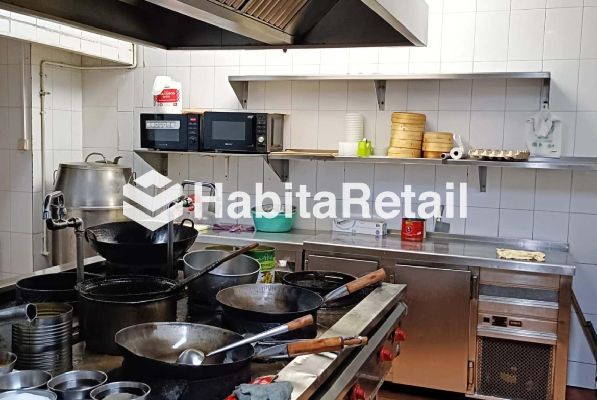 Dispone di una cucina perfettamente dimensionata per soddisfare l’elevato volume di commensali, oltre a due bagni per i clienti, un bagno adattato e varie aree per lo stoccaggio, l’ufficio e gli spogliatoi del personale.